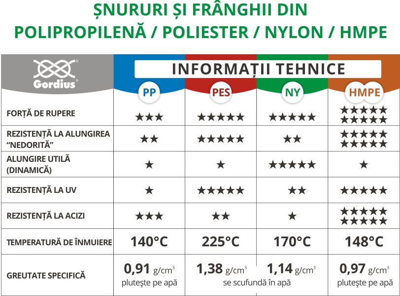 Pe baza legilor din Romania, verificate prin Protecția Consumatorului, afișarea celor mai importante caracteristici tehnice este obligatorie – la șnururile și frânghiile tehnice acesta ar fi Forța de rupere. Totuși observăm că produsele de proveniență îndoielnică nu sunt testate, sau valorile respective nu sunt trecute pe eticheta produsului, iar lipsa acestuia poate induce în eroare cumpărătorul neavizat. Și din acest punct de vedere produsele comercializate sub marca Gordius©prezintă siguranță și oferă un raport de calitate/preț corect și competent.
